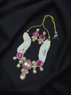 Designer Pearl Necklace with Kundan Meena and Monalisa Stone – Wedding Special