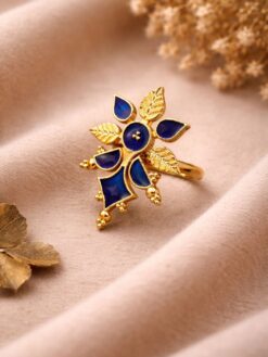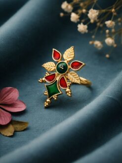 This exquisite piece reflects the richness of Indian heritage while maintaining a modern appeal. The intricate floral design showcases artistic finesse, making it a standout addition to your jewelry collection. Whether paired with ethnic attire or fusion outfits, this ring enhances your overall appearance with its unique color play and elegant finish.