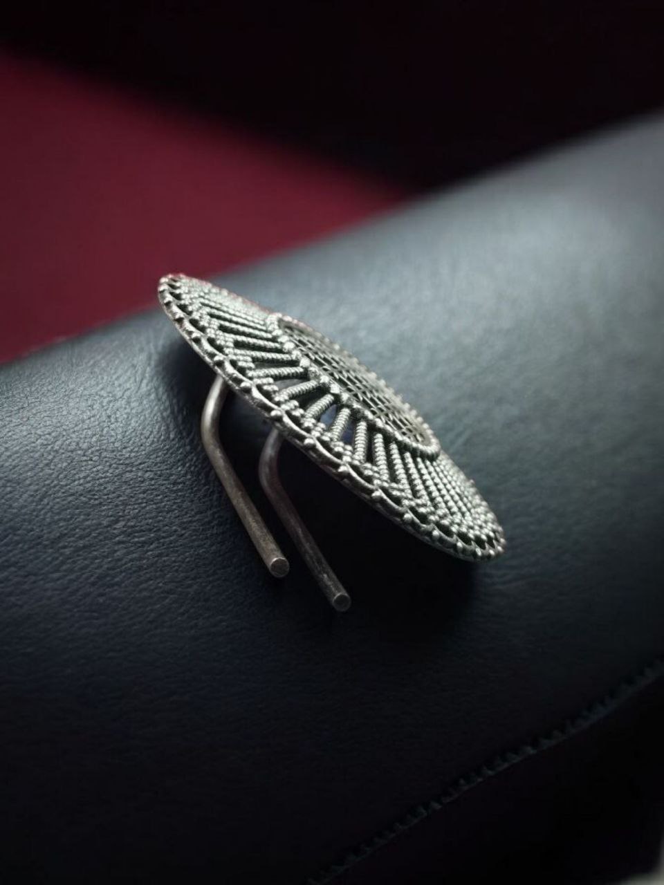 Made with premium quality metal and coated with a silver replica oxidized finish, this Adjustable Hair Pin stands out for its antique texture and handcrafted feel. The detailed craftsmanship around the border makes it visually striking, giving your hairstyle a bold, traditional touch. Its versatile adjustable grip ensures that it fits comfortably and stays secure without causing any discomfort. Suitable for all hair types—straight, curly, wavy, or braided—this piece is both fashionable and functional.