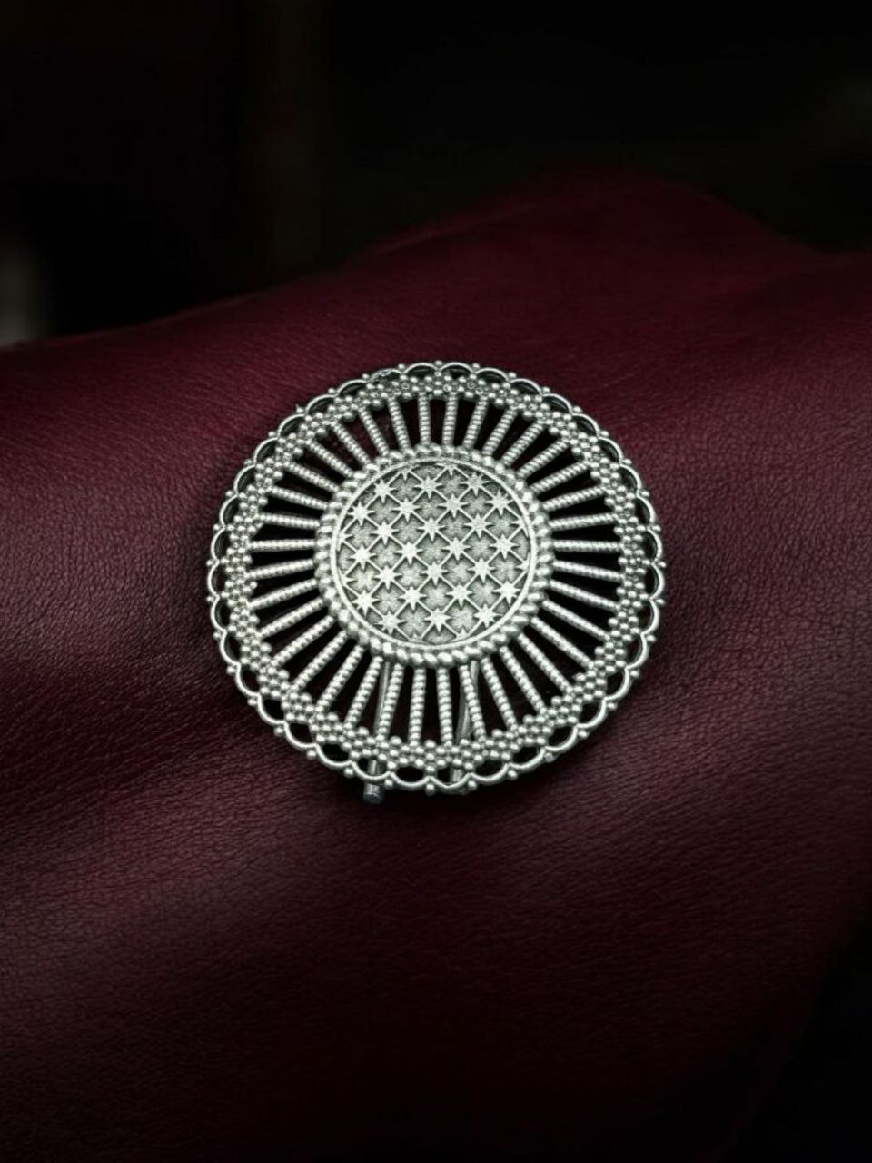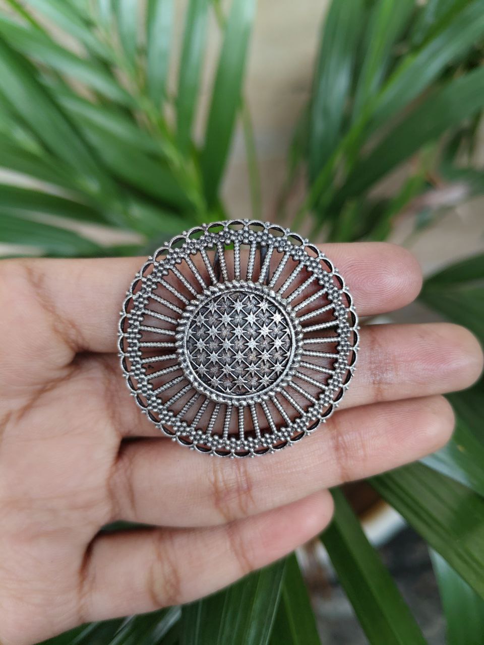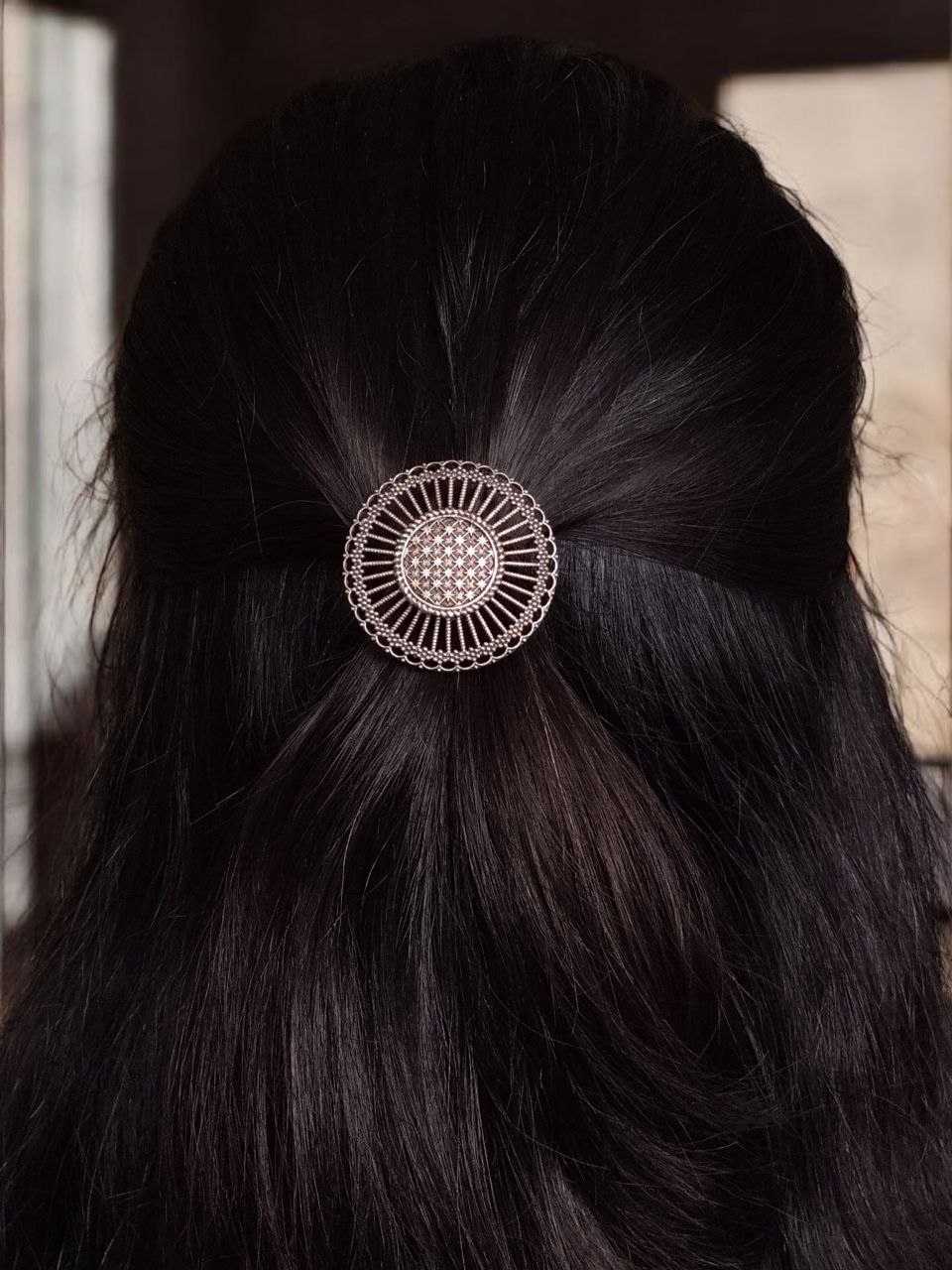 Bring home this Silver Replica Oxidized Round Hair Pin and make every hairstyle look elegant, meaningful, and beautifully expressive.