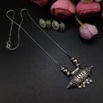 The Antique Silver Plated Necklace and Jhumka Earrings set makes for a thoughtful and cherished gift for your loved ones. Whether it’s a birthday, anniversary, or any special occasion, this jewelry set is a timeless token of love and appreciation. It comes beautifully packaged, ready to delight the recipient with its elegance and charm.