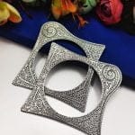 The designer piece of bangle oxidized German silver is more than just a piece of jewelry; it is a work of art. Its unique square shape, vintage finish, and intricate craftsmanship make it a must-have accessory for anyone looking to add a touch of elegance and uniqueness to their style. Whether as a gift or a personal indulgence, this bangle is sure to be cherished for its timeless beauty and exceptional quality.
