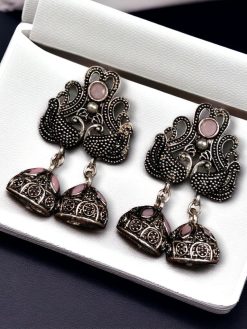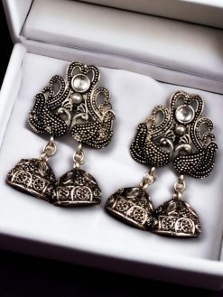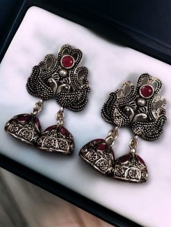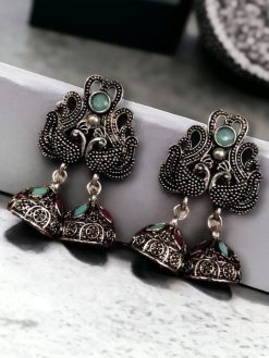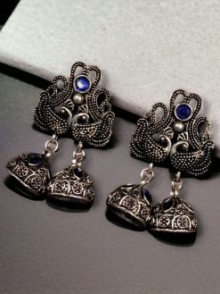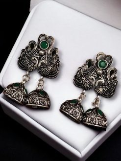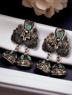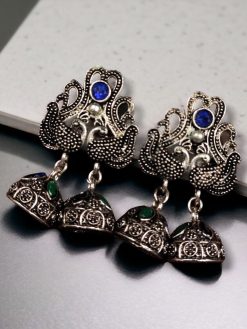 Crafted from high-quality German silver, these earrings ensure durability and a long-lasting shine. The peacock design symbolizes elegance and grace, making it a timeless addition to any jewelry box. The brilliant stone embellishments are strategically placed to enhance the beauty of the peacock motif, providing a radiant and eye-catching appeal. Whether you’re attending a traditional ceremony or adding an ethnic flair to your casual outfit, these earrings are the perfect accessory to complete your look.