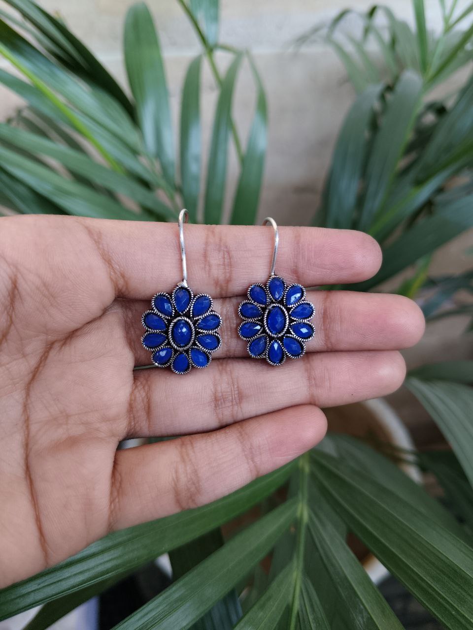 Beautiful Look Flower Design Hook Earrings with Elegant Stone Work