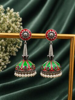 This jewelry piece stands out because of its premium Meena Kari craftsmanship and classic jhumka elegance. It offers a perfect combination of comfort, durability, and style. The colorful detailing enhances its beauty, while the quality finish ensures long-lasting shine. It is ideal for women who appreciate heritage-inspired jewelry with timeless charm.