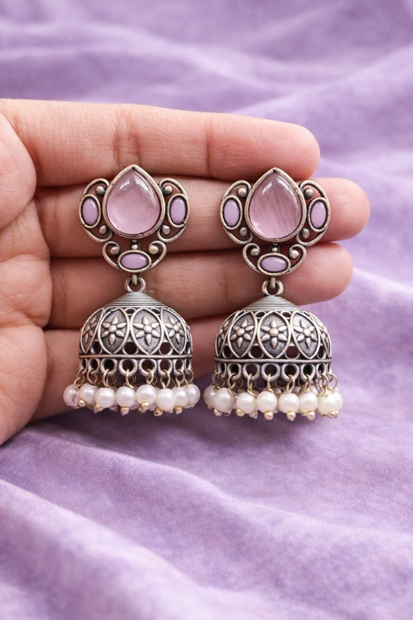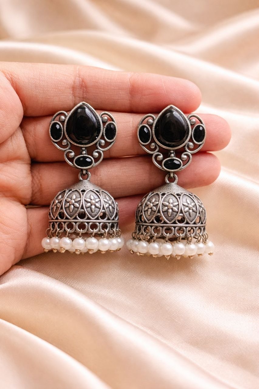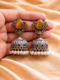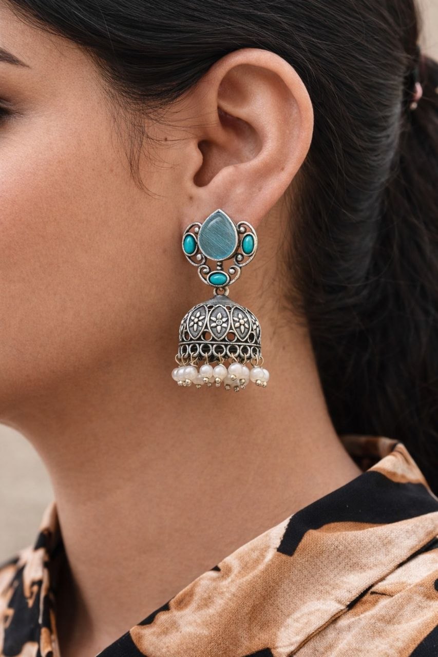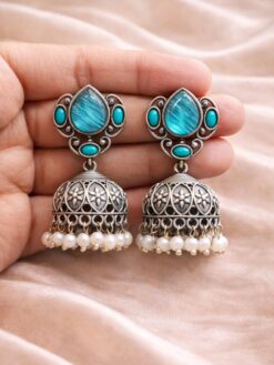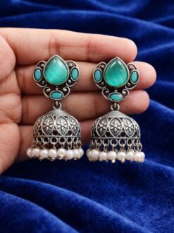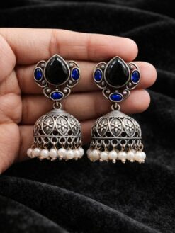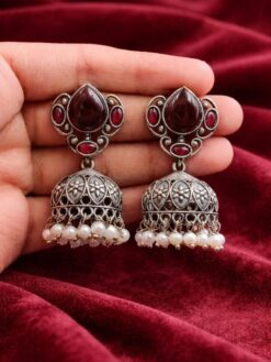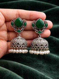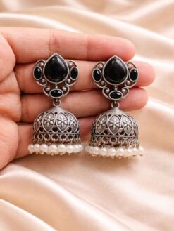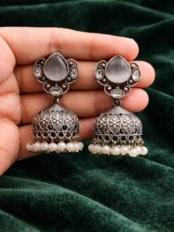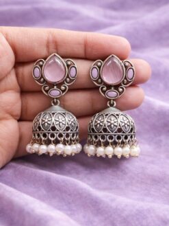 This jewelry piece stands out for its traditional jhumka design combined with a modern silver finish. It offers a perfect balance of style, durability, and comfort. The elegant detailing enhances its overall look, making it suitable for festive celebrations, weddings, and daily wear. Its lightweight nature ensures ease of use without compromising on style.