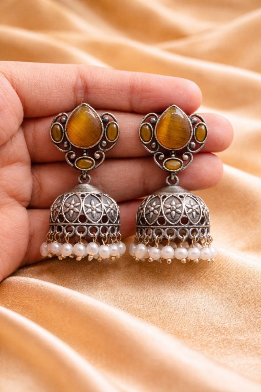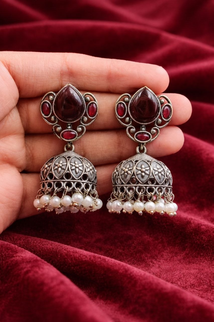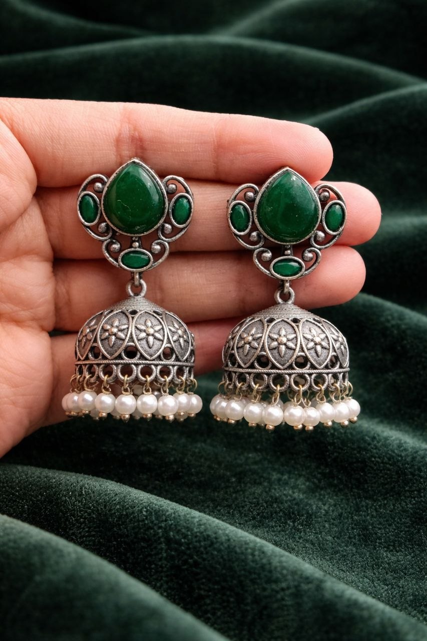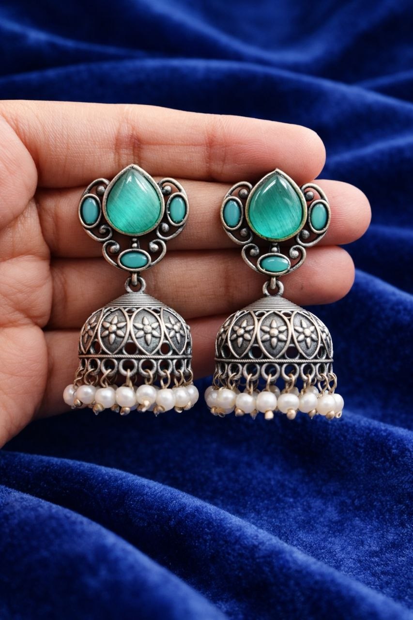 This jewelry piece stands out for its traditional jhumka design combined with a modern silver finish. It offers a perfect balance of style, durability, and comfort. The elegant detailing enhances its overall look, making it suitable for festive celebrations, weddings, and daily wear. Its lightweight nature ensures ease of use without compromising on style.