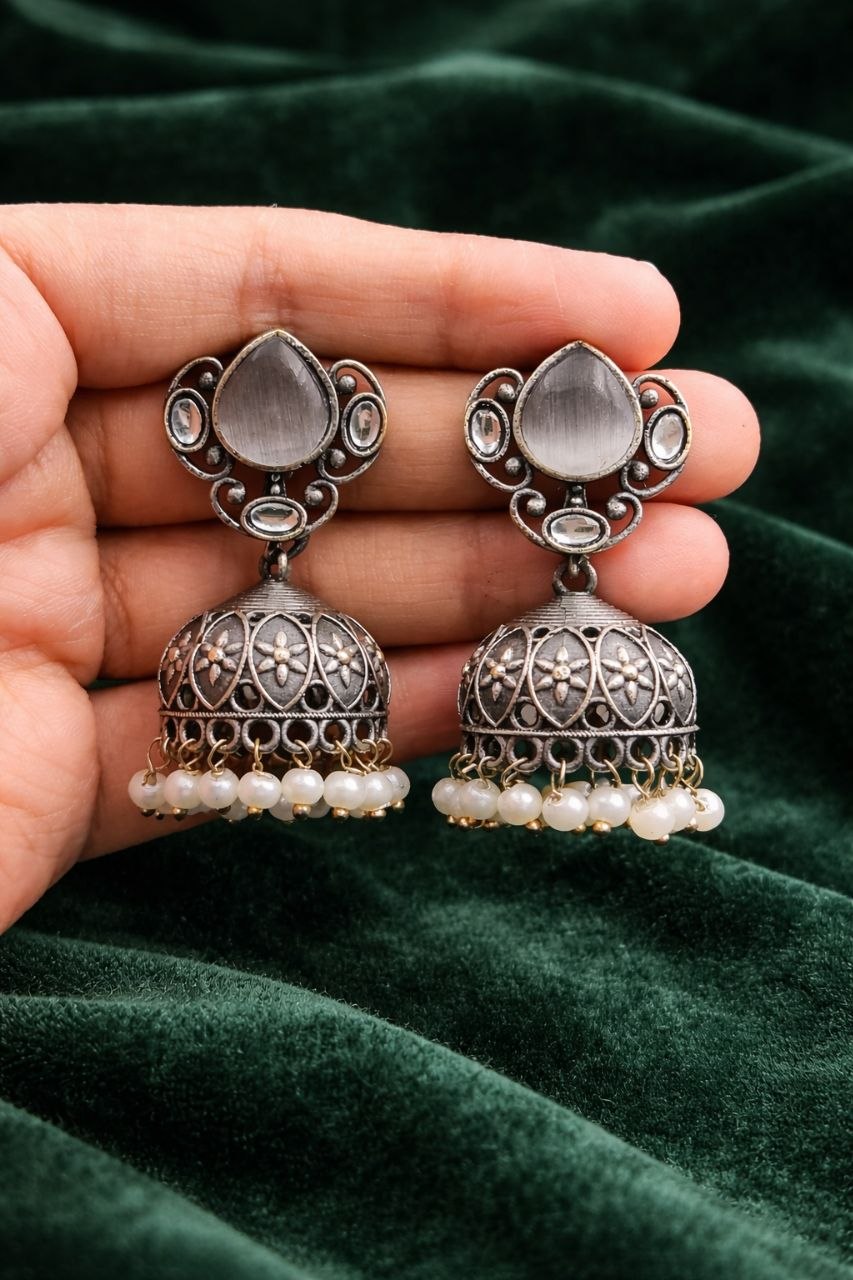 Silver Drop Jhumka is a perfect choice for those who love premium and stylish jewelry. Inspired by timeless Indian traditions, this elegant accessory beautifully enhances your overall look with its graceful drop design. The classic jhumka style combined with a silver-tone finish makes it an ideal pick for festive occasions, weddings, and everyday ethnic wear.