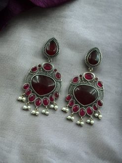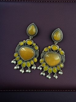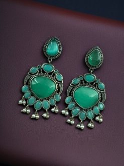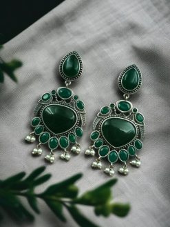 Add a touch of tradition and beauty to your look with these Affordable Oxidized Bird Design Silver Replica Stone Earrings. They are more than just accessories – they are a statement of timeless elegance and cultural charm.