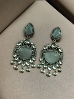 The hook-style dangler design adds movement and grace, giving a refined look that flatters all face shapes. Whether you’re dressing up for a festive occasion, attending a cultural event, or adding a bit of flair to your everyday outfit, these Silver Replica Stone Earrings make a versatile accessory in your jewelry collection.