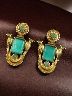 Elevate your traditional style with these Best Traditional Gold Plated Bird Earrings, meticulously designed to add grace and elegance to any ethnic ensemble. Featuring intricate bird motifs, emerald green stones, and a vintage antique gold finish, these Bird Earrings are a stunning example of handcrafted ethnic jewelry inspired by India’s rich cultural heritage.