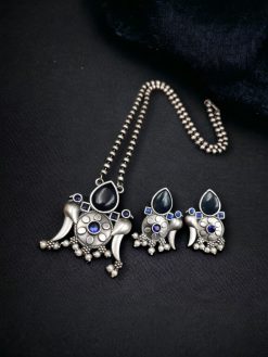 Traditional Ganesha Necklace Set in Unique Oxidised Silver Look alike Finish