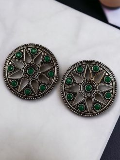 Enhance your ethnic charm with our exquisite Brass Round Stud Earrings, designed to add a touch of sophistication and tradition to your jewelry collection. Featuring a beautiful stone at the center, these earrings blend elegance with cultural heritage, making them a must-have accessory for every jewelry lover. Whether you’re dressing up for a festive occasion, wedding, or casual ethnic wear, these stud earrings will perfectly complement your look.