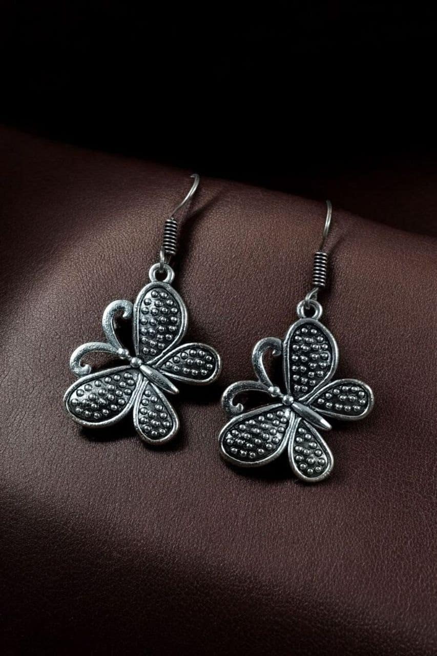 Embrace everyday elegance with these silver plated butterfly dangler earrings – stylish, feminine, and endlessly wearable