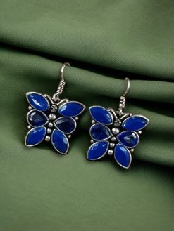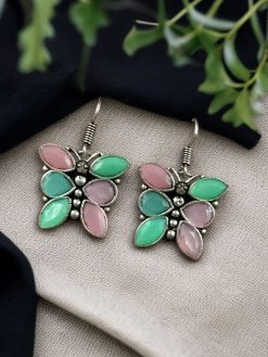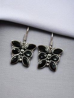 Oxidized Daily Wear Butterfly Hook Earrings | Stone Work Silver Plated Best Jewelry For Girls