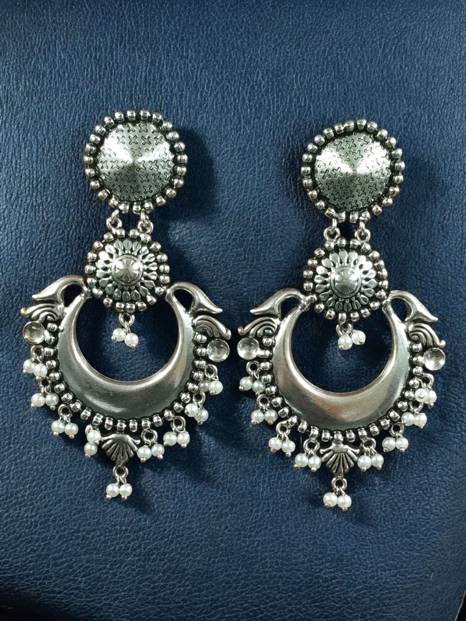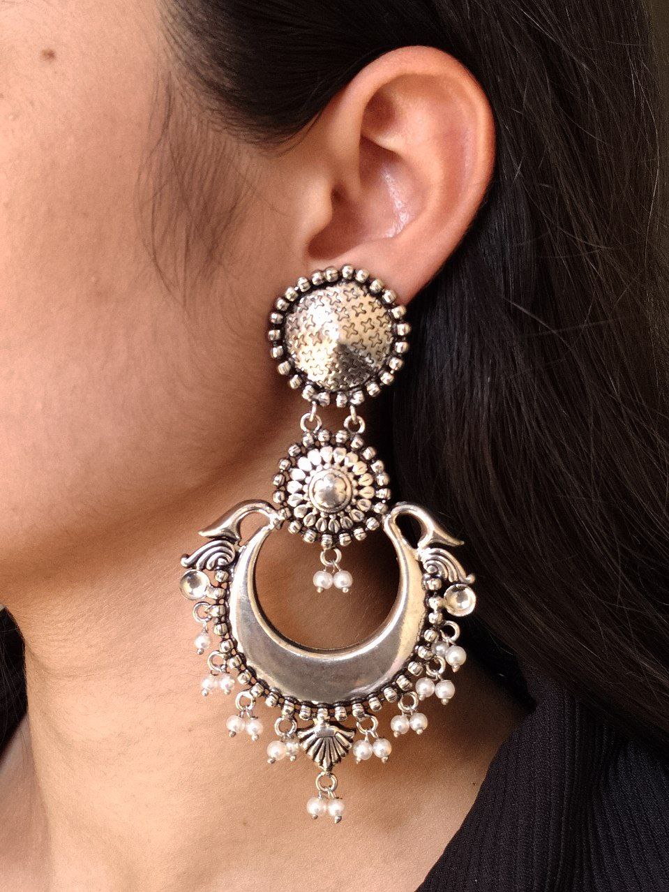 Celebrate your love for traditional Indian jewelry with these Silver Plated Pearl Work Chandbali Earrings — a must-have addition to every jewelry collection. They also make a thoughtful and elegant gift for loved ones who appreciate fine artistry and classic designs.