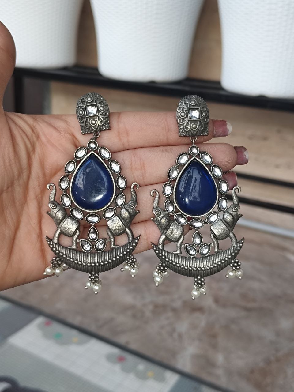 Dangler Peacock Earrings | Best Oxidised Monalisa Silver Replica Earring With Pearl Beads