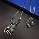 Designer Elephant Oxidised Chain Necklace With Jhumka Earrings