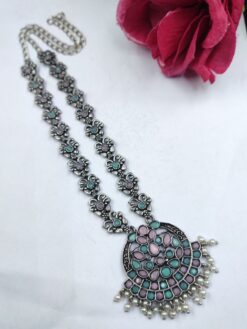 The appeal of this necklace lies in its ability to balance subtlety with statement style. It is perfect for both minimal everyday looks and elaborate festive outfits. The lightweight structure ensures comfort, allowing you to wear it for long hours without any inconvenience. This makes it a practical yet stylish addition to your jewelry collection.