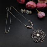 Designer Jaali Work Flower Design German Silver Pendnet With Jhumka Earrings