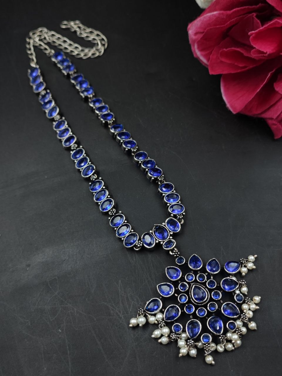 The Designer Oxidized Necklace is more than just an accessory—it is a statement of elegance and tradition. Its timeless design ensures that it remains a favorite in your jewelry collection for years to come. Whether you are attending a festive celebration or enhancing your everyday style, this necklace offers unmatched charm and sophistication.