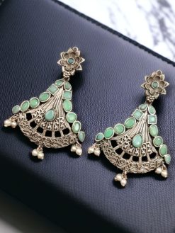 Pair these elegant brass earrings with a traditional saree or lehenga for a grand look, or style them with an Indo-Western outfit for a trendy appeal. Their hanging stud design makes them ideal for any occasion, offering a perfect balance of charm and elegance.