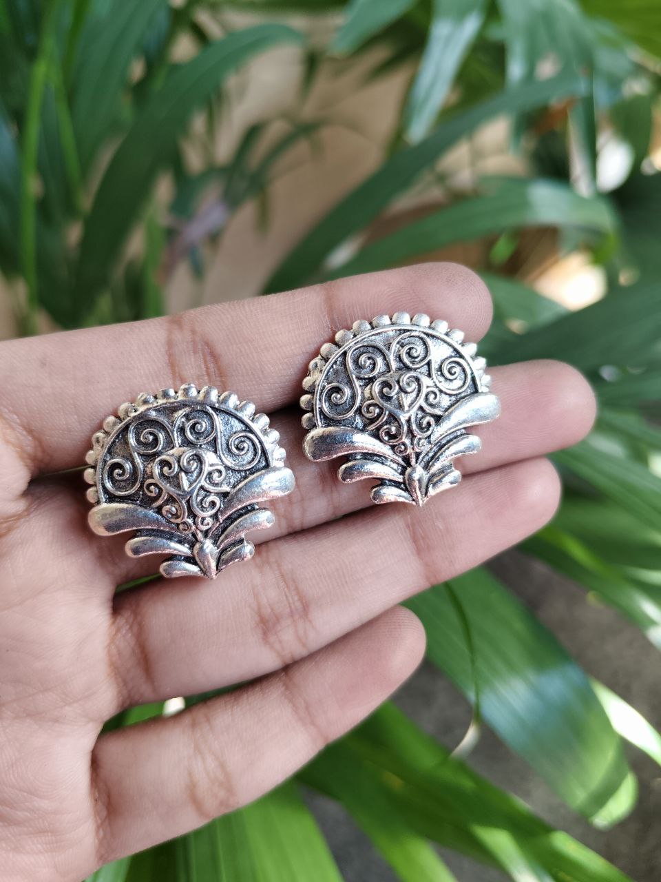 Elegant German Silver Floral Art Stud Earrings for Women with Stylish Ethnic Design