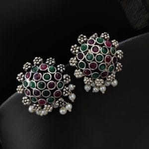 - Perfect Gift: Whether you’re buying them for yourself or as a gift for a loved one, these German Silver Stone Studs with Pearl Work are sure to be appreciated. They come in an elegant jewelry box, making them ready for gifting.