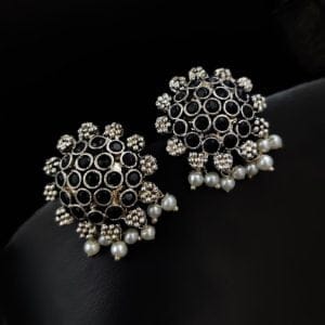 Elevate your style with these exquisite German Silver Stone Studs adorned with delicate pearl work. Designed with utmost precision and crafted to perfection, these studs are the perfect accessory to add a touch of elegance to any outfit. Whether you’re dressing up for a special occasion or adding a touch of sophistication to your everyday look, these studs are a must-have in your jewelry collection.