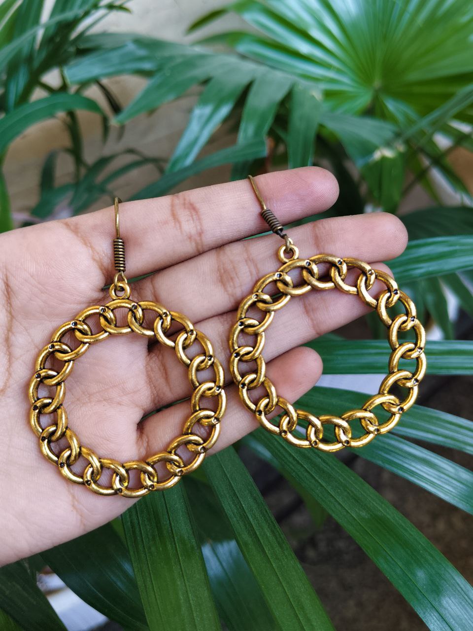 Elegant Gold Plated Round Hook Dangler Earrings for Women’s Stylish Modern Ethnic Look