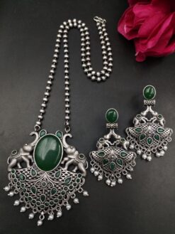 This necklace set is also a thoughtful gifting option for birthdays, festivals, weddings, or special occasions. Its symbolic elephant design combined with elegant Monalisa stone and pearl work makes it a meaningful and stylish gift for loved ones. Easy to maintain and timeless in appeal, it is a beautiful addition to any ethnic jewelry collection.