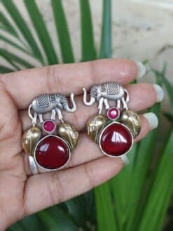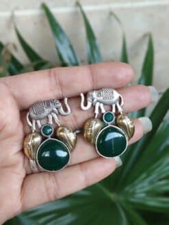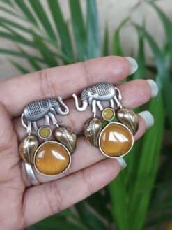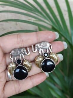 Made with high-quality brass, these earrings offer durability along with a premium appearance. The elegant oxidized polish enhances the antique feel of the design, giving the Elephant Studs Earring a vintage charm that pairs beautifully with ethnic outfits like sarees, kurtis, and lehengas. They also complement fusion and Indo-western styles, making them a versatile accessory that suits multiple fashion preferences.