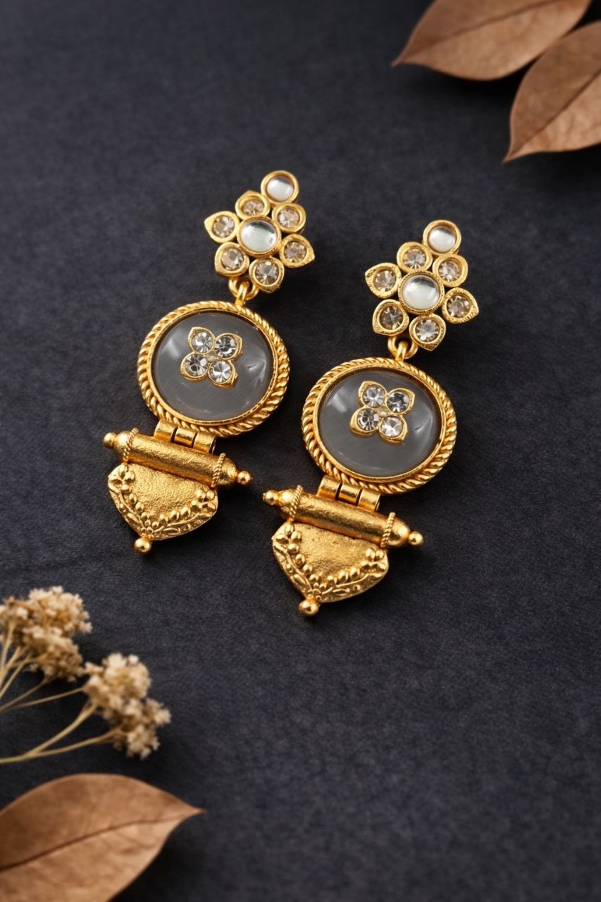 This beautifully crafted jewelry piece is perfect for women who appreciate ethnic designs with a modern touch. The intricate detailing reflects fine craftsmanship, while the lightweight structure ensures all-day comfort. Whether paired with sarees, lehengas, salwar suits, or Indo-western outfits, these earrings effortlessly elevate your style and add a statement to your overall appearance.
