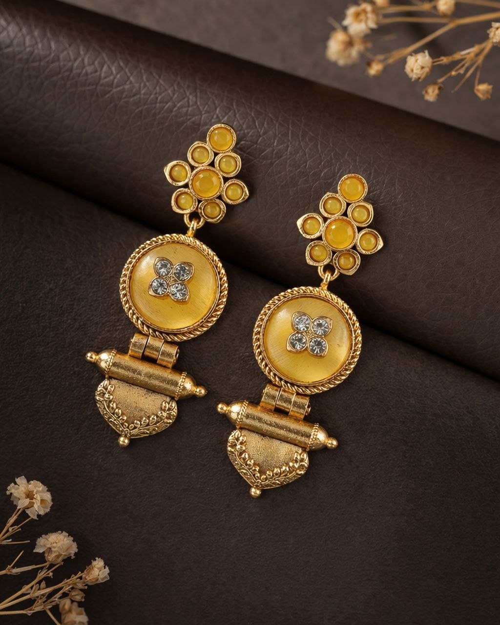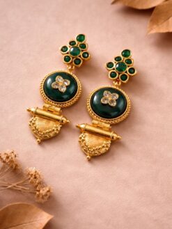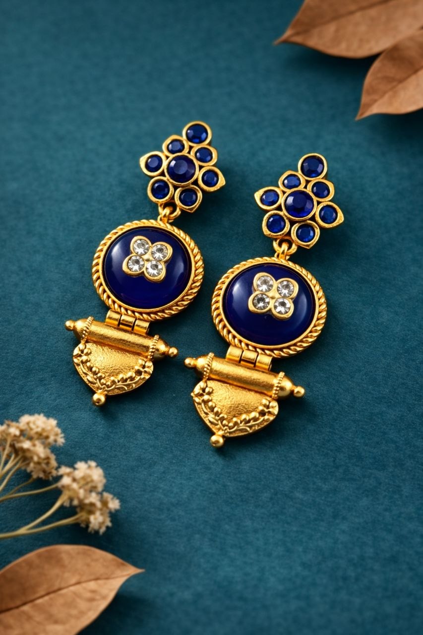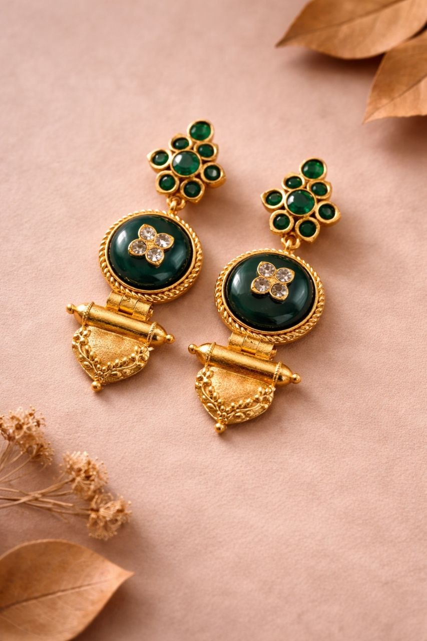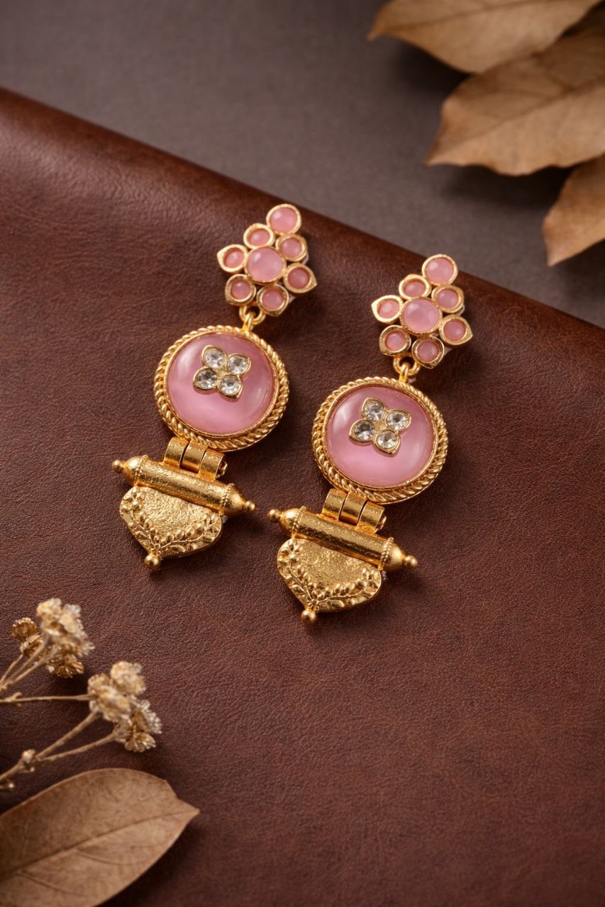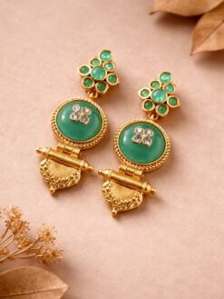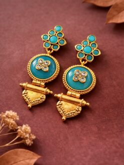These earrings pair beautifully with traditional outfits such as silk sarees, lehengas, and Anarkali suits. For a modern twist, you can also style them with Indo-western or contemporary outfits. Keep your accessories minimal to let this jewelry piece shine. Soft glam makeup or bold lips can enhance your look, making it more attractive and festive-ready.