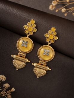These earrings stand out due to their classic ethnic appeal and premium finish. The gold plating offers a radiant and rich look, closely resembling real gold jewelry. Designed for versatility, they can be worn for festive events, weddings, parties, or even daily styling. Their durable build and comfortable design make them a practical yet stylish addition to your collection.