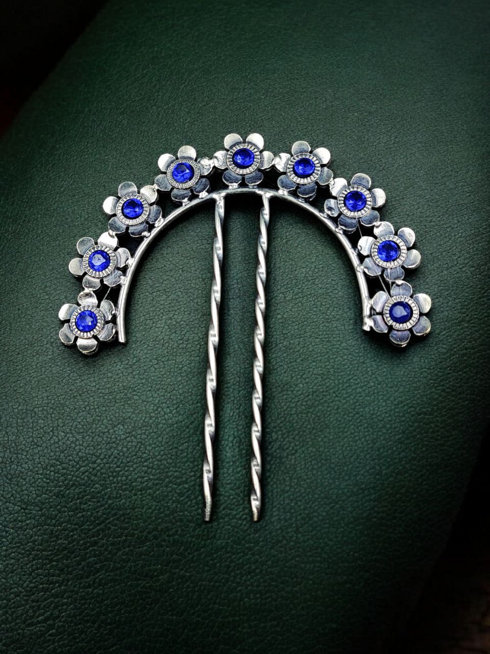 Designed for women who appreciate handcrafted hair jewelry with traditional influence, this Flower Bun Stick combines durability with artistic beauty. The stone work enhances its sophistication, while the silver plated coating ensures it retains its shine when cared for properly. Its elegant design makes it a thoughtful gift for weddings, birthdays, anniversaries, and festive occasions such as Diwali and Karva Chauth.