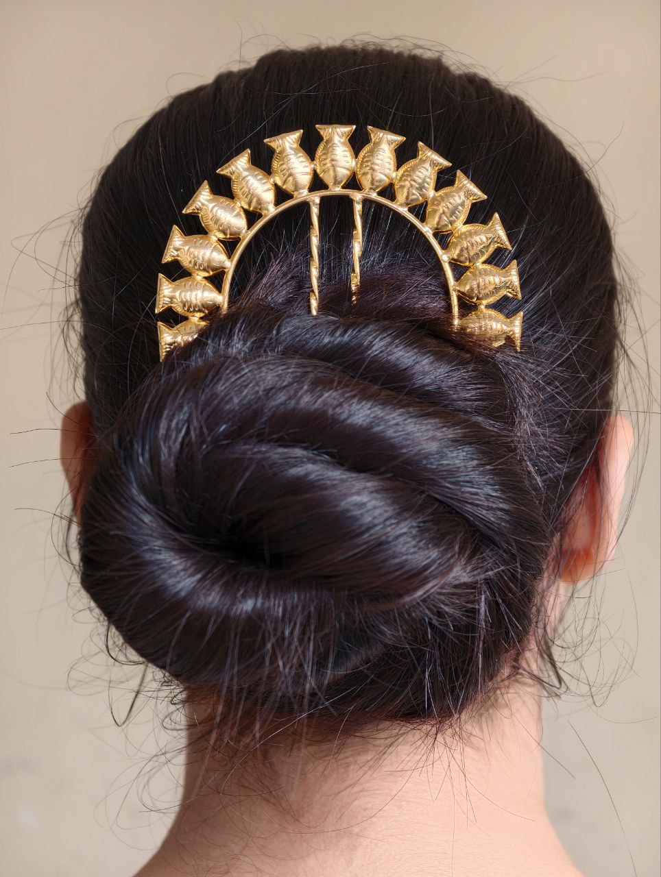 If you are looking for hair jewelry that blends cultural symbolism, elegance, and comfort, this Gold Plated Fish Design Juda Pin is the perfect choice. Unique, stylish, and beautifully crafted, it enhances your hairstyle effortlessly and completes your ethnic look with timeless charm.