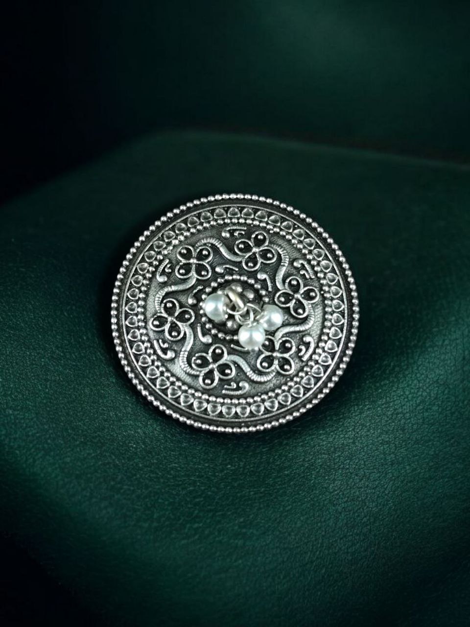 Ideal for pairing with kurtis, sarees, lehengas, suits, or even western outfits, this Pearl Work Floral Art Hair Pin blends seamlessly with any look. Its timeless design makes it suitable for office wear, college days, family gatherings, festive events, or casual outings. The oxidized silver replica finish ensures that it remains attractive and durable even with regular use.