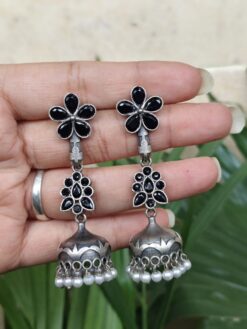 These earrings are versatile and can be styled effortlessly with sarees, lehengas, kurtis, or even fusion outfits. The elegant floral design makes them a standout accessory that complements different styles and occasions. Whether you are attending a wedding, festive celebration, or party, these jhumkas bring a sophisticated and graceful touch to your appearance.