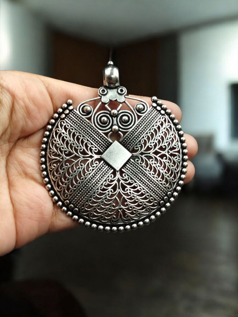 Floral Art Round Pendant German Silver DIY Jewelry Raw Material for Handmade Craft Necklace Making