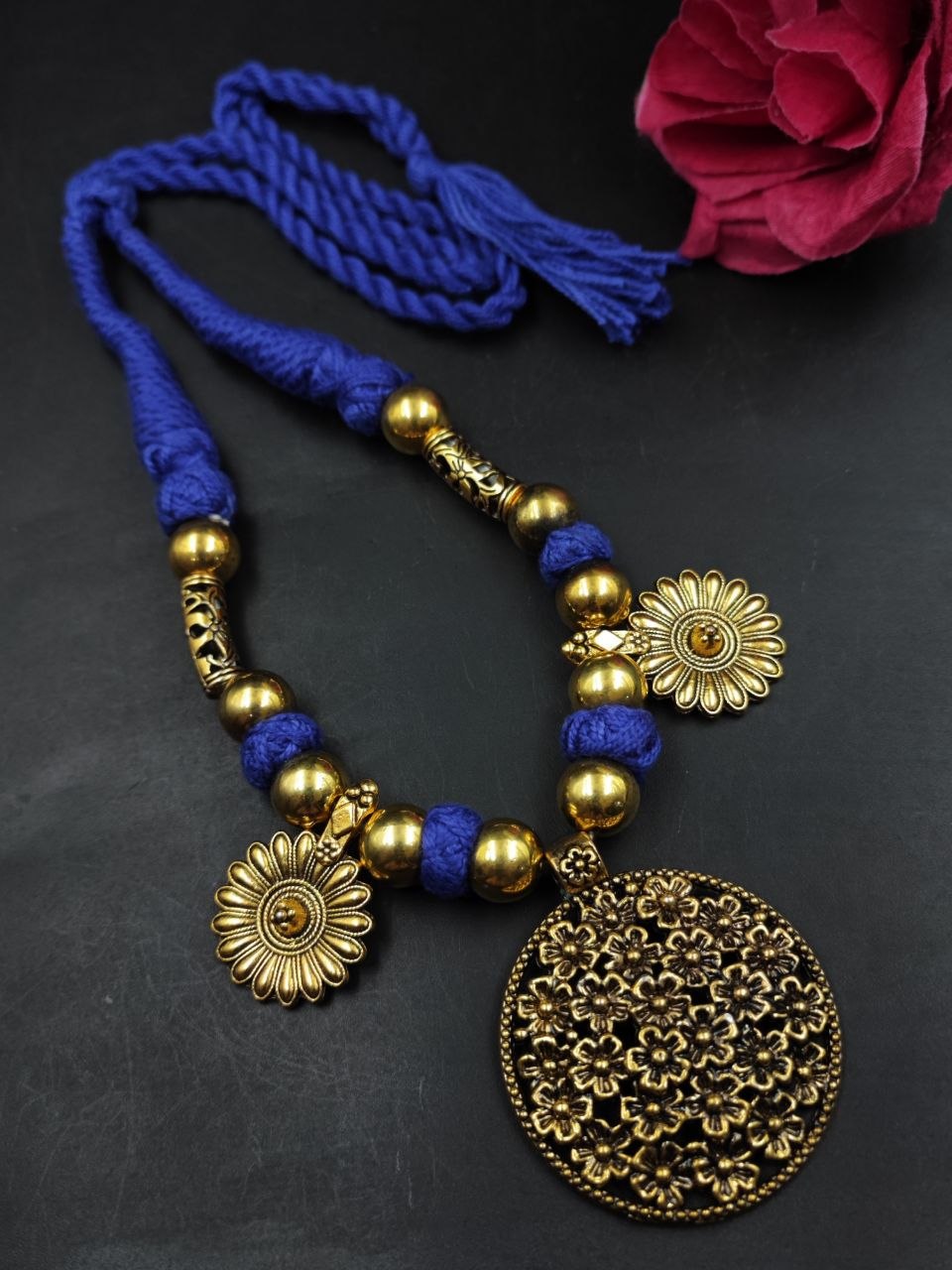 Floral Art Thread Necklace Design & Craftsmanship