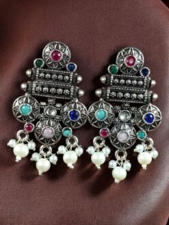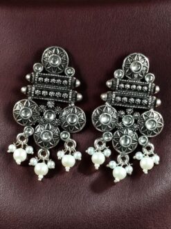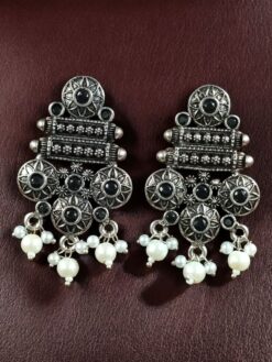 Perfect for gifting, these earrings make a thoughtful present for birthdays, anniversaries, or festive occasions. Their timeless floral pattern and meticulous craftsmanship make them a must-have addition to your jewelry collection. Each piece reflects the rich Indian tradition of handmade German silver jewelry, ensuring authenticity and uniqueness in every design.