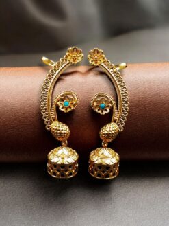 Perfect for women who love bold ethnic jewelry, this Gold Plated Jhumka Earcuff suits all age groups and styling preferences. It can be worn alone as a standout piece or paired with minimal jewelry to maintain a balanced, elegant appearance.