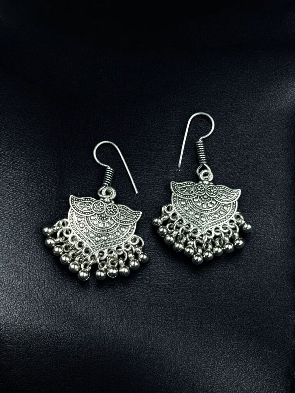 These German silver floral art danglers are not just jewelry; they are a statement of elegance and culture. They also make a thoughtful gift for birthdays, anniversaries, weddings, or festive occasions. The timeless design ensures they are cherished for years, making them a versatile addition to any jewelry collection. Their intricate craftsmanship highlights the balance of tradition and modern style, making them suitable for women of all ages.