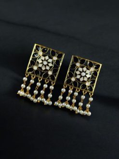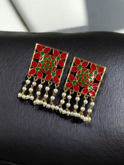 Each earring is intricately designed with premium-quality brass as the base metal, offering durability and a refined finish. The gold plating enhances their luxurious appearance, giving them the luster of real gold while keeping them lightweight and wearable. The highlight of these meenakari stud earrings is the traditional Meenakari detailing, hand-painted with fine enameling that showcases vibrant colors and intricate patterns rooted in Indian heritage.