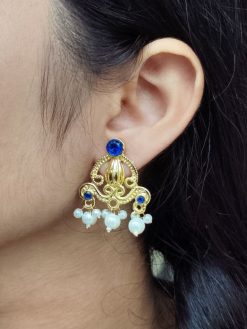 The earrings feature a unique design that combines detailed craftsmanship with fine gold plating, giving them a luxurious yet subtle appeal. The addition of sparkling stones and delicate pearl accents enhances their charm, making them an eye-catching piece of jewelry for any occasion. Whether you’re attending a festive celebration, a wedding ceremony, or simply dressing up for a cultural event, these Gold Plated Earrings provide the perfect finishing touch to your look.