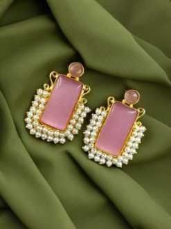 What sets these earrings apart is their versatility. The geometric form speaks to minimalist and contemporary fashion lovers, while the pearl and Monalisa combination adds a hint of tradition, making it an ideal fusion accessory for western and ethnic outfits alike.