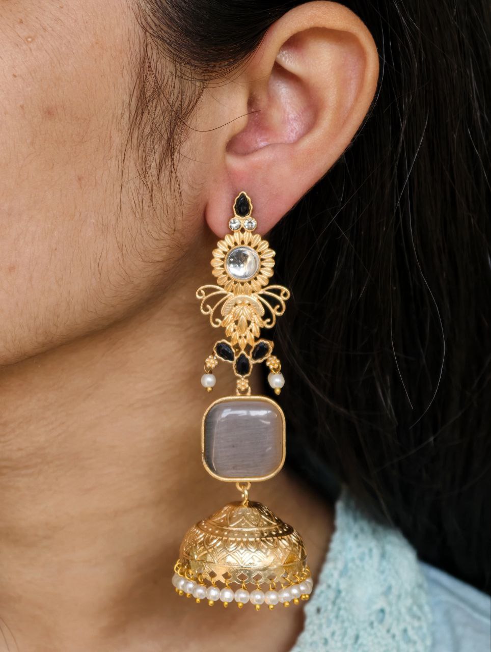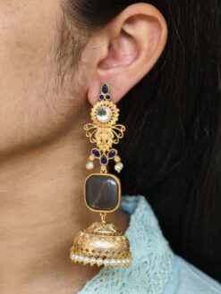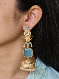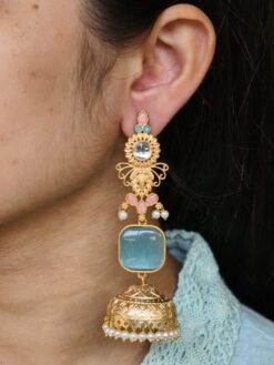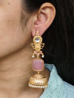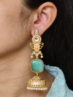 Ideal for personal use, boutique collections, and resale, these beautiful gold plated jhumka earrings offer excellent value by combining traditional artistry, premium aesthetics, and lightweight comfort. If you’re looking for earrings that deliver festive beauty without compromising on comfort, this pearl and stone work dangler jewelry is a must-have addition to your collection.