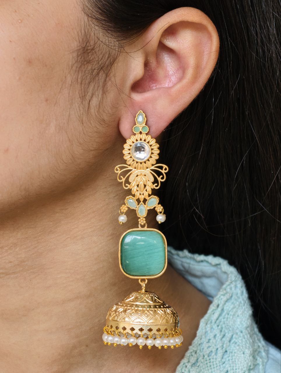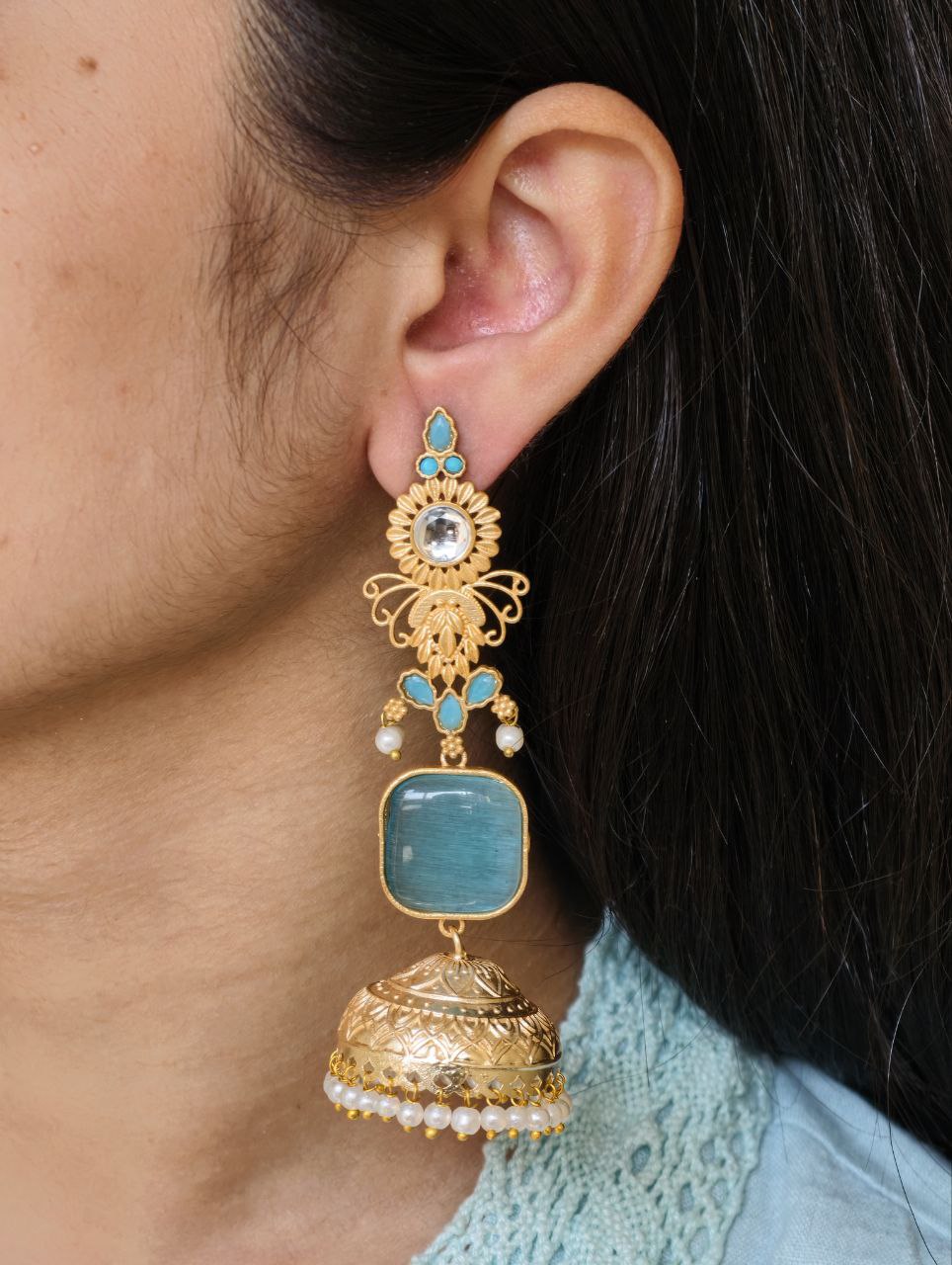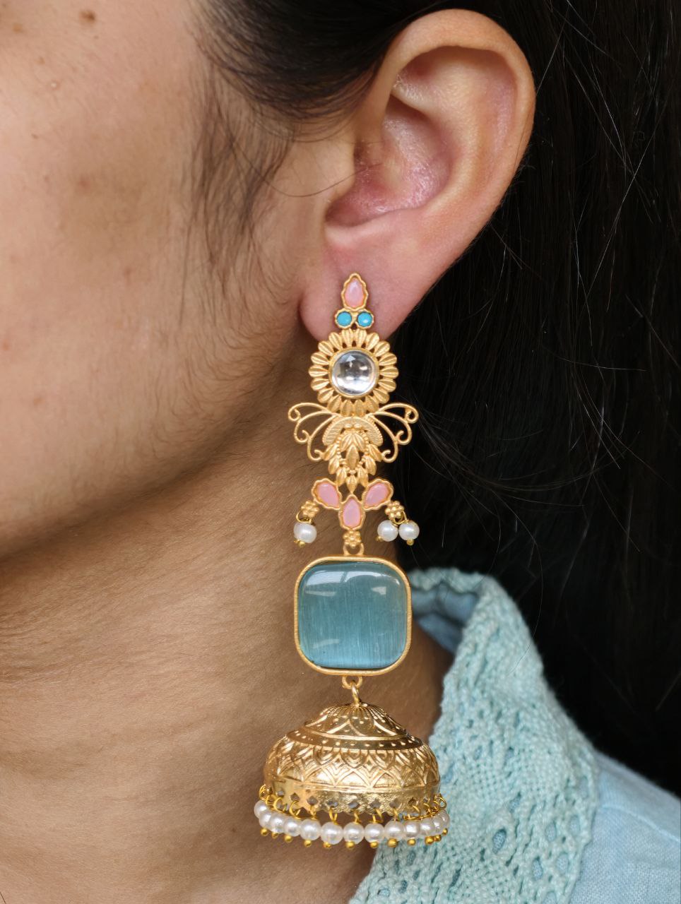 Designed as lightweight dangler earrings, these jhumkas offer beautiful movement without heaviness, ensuring comfort even during long hours of wear. The secure fastening keeps them in place, making them suitable for weddings, festivals, parties, and family functions. Despite their intricate design, they are thoughtfully crafted to remain comfortable and skin-friendly.
