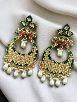 These traditional lotus chandbali earrings are a must-have for brides, bridesmaids, or any woman who wants to add a touch of majestic glamour to her festive wardrobe. Whether it’s a sangeet, mehendi, or wedding ceremony, these earrings promise to be the center of attention.